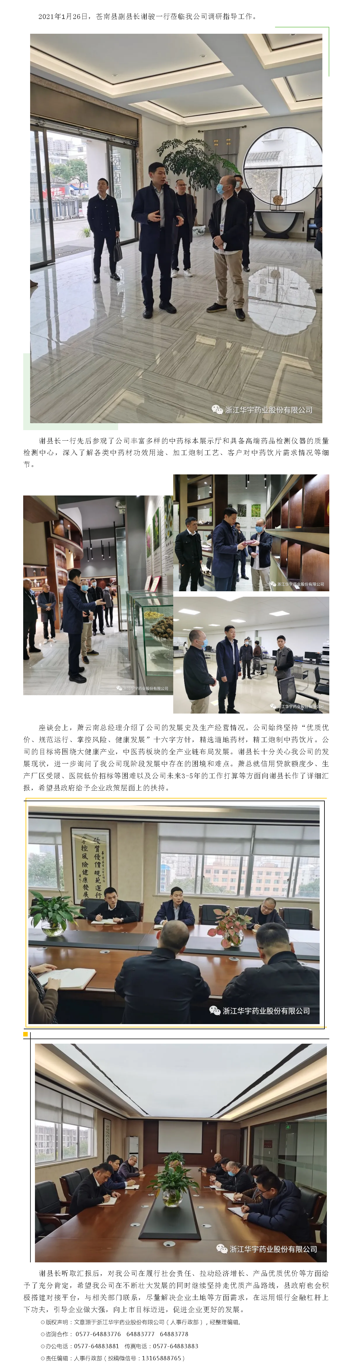 苍南县副县长谢骏一行莅临我公司调研指导工作